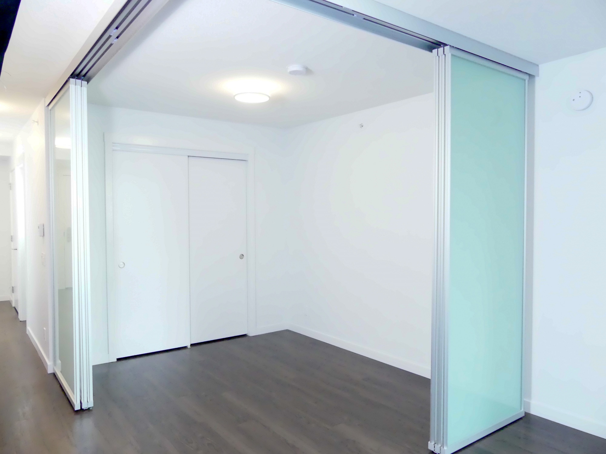 This suite allows for maximum flexibility with a separate office or flex space, and transforming walls that move to fit your needs. The suite features modern finishes including: stone countertops, vinyl plank floors and a full appliance package. Located on the north side of the building, this suite features a larger balcony which looks down to our tranquil 2nd floor terrace level.
